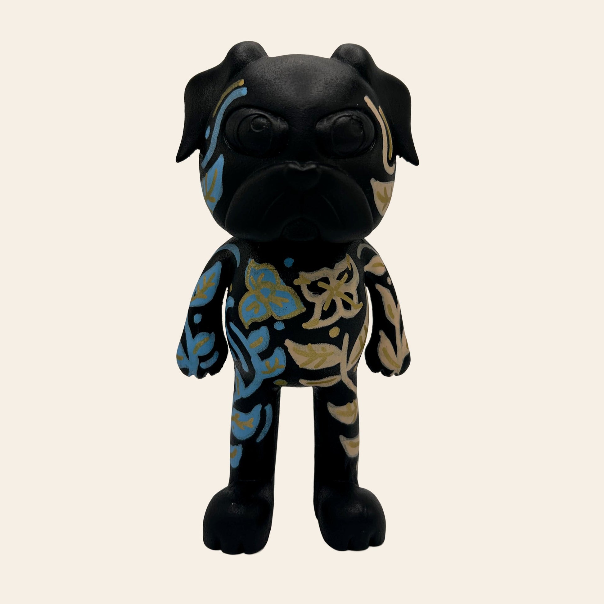 Celebrate the next chapter of Chico with this special hand-painted floral design, inspired by the deep significance of flowers in Mexican culture. Each brushstroke is carefully crafted, turning our beloved pug into a vibrant canvas of color and meaning.